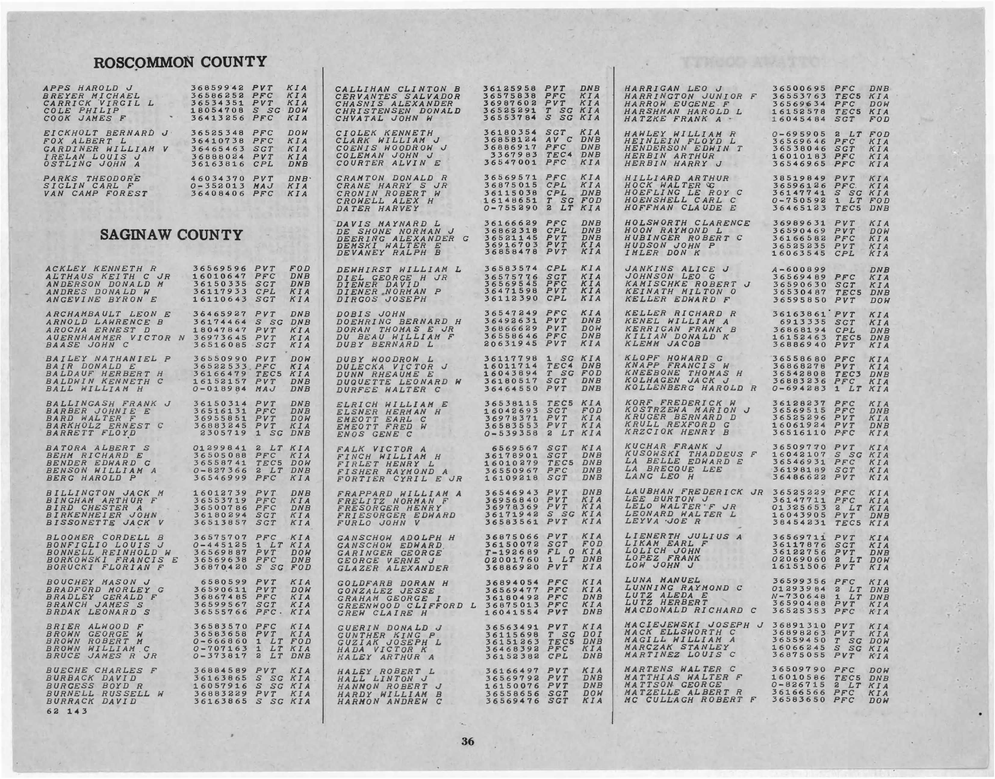 Rosters Of WW II Dead
