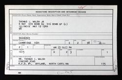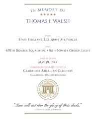See also S/Sgt Thomas Ira Walsh Jr. Individual Deceased Personnel File (IDPF)