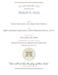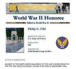 416th Bombardment Group (L) S/Sgt. Philip G. Fild Airplane Mechanic - Gunner, 35533423 Killed In Action - Dec 25, 1944 668th Bombardment Squadron (L) |
