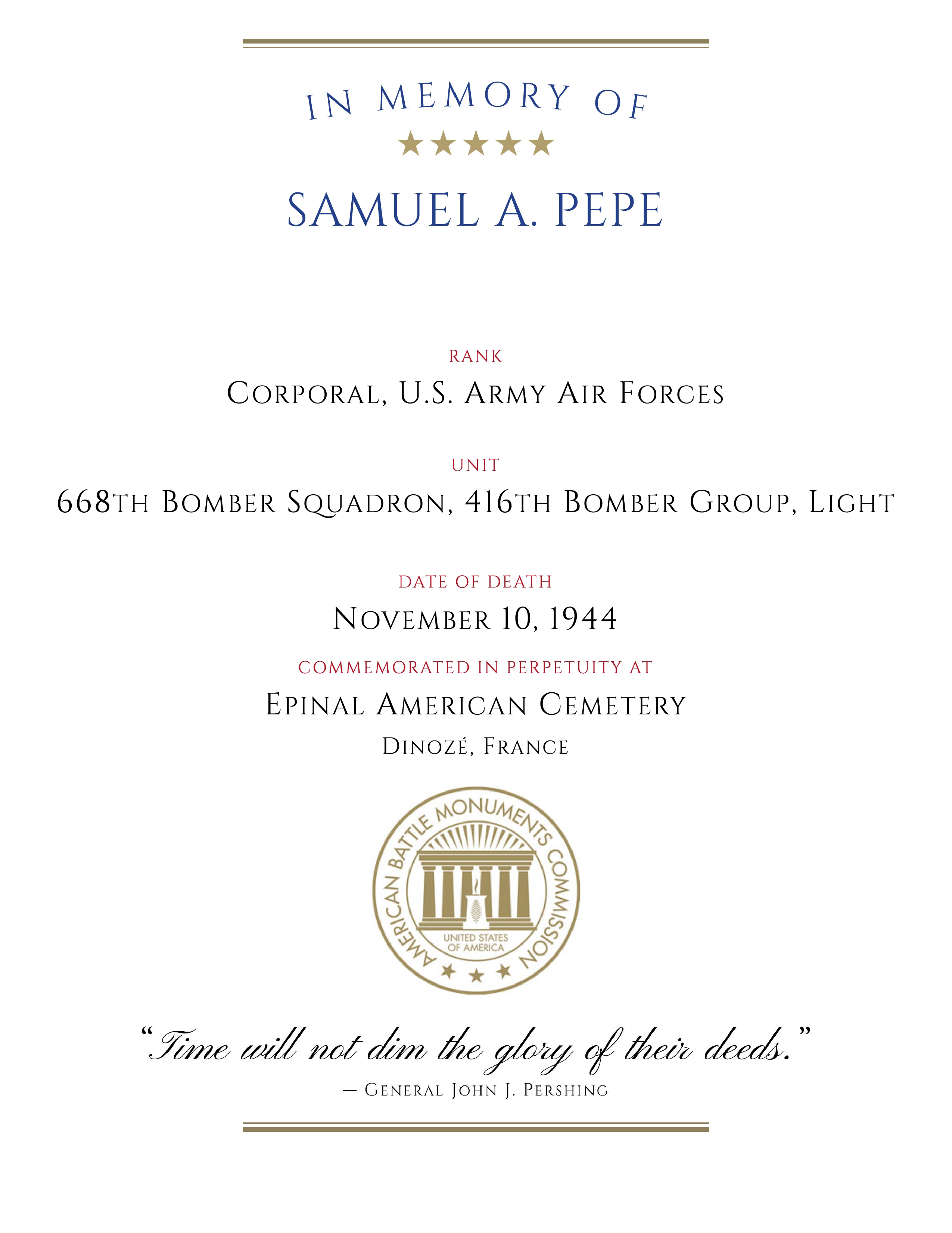 See also Cpl Samuel A. Pepe Individual Deceased Personnel File (IDPF)