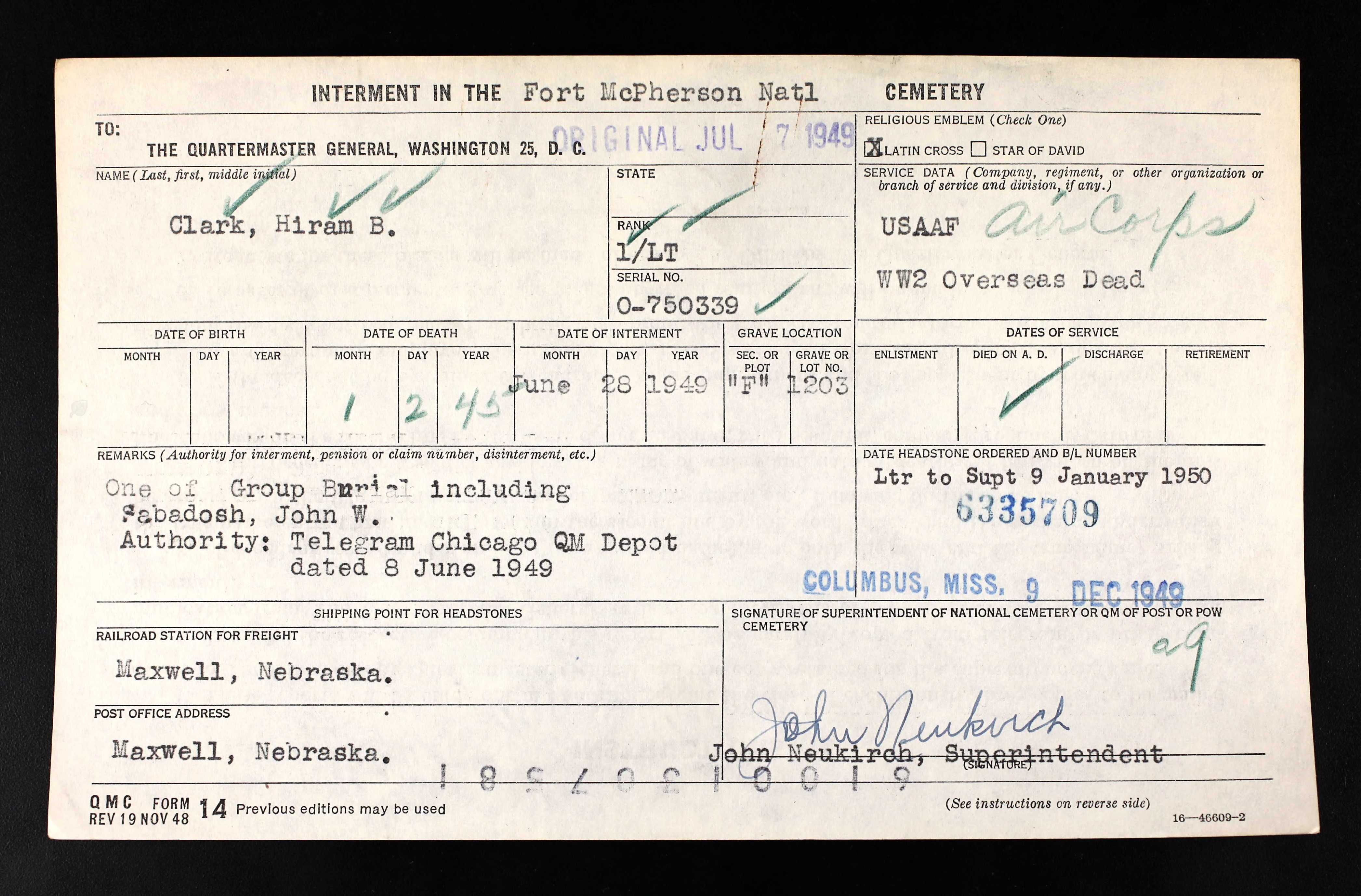 See also 1Lt Hiram Bovee Clark Individual Deceased Personnel File (IDPF)