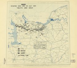 [July 22, 1944], HQ Twelfth Army Group situation map Map showing Western Allies and Axis troop position details in Western Europe as of approximately 1200 hours, July 22, 1944 World War II Military Situation Maps Collection Library of Congress |