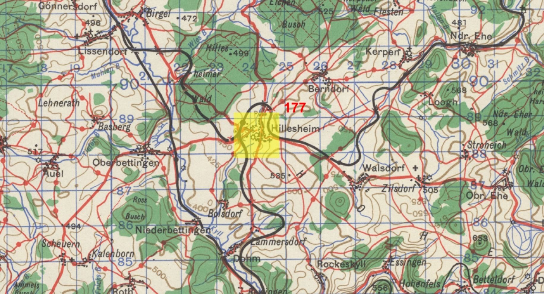 Place of Take-Off : A-55 Melun/Villaroche, France A/C Dispatched : 31 Total -- 8 A-20's, 23 A-26's Modified British System Reference: L-242885 Secondary Target : No Alternate Targets Authorized Summary of Results : Two flights - No Attack (leader did not bomb), three flights bombed Towns of Pelm, Feusdorf and Geroistein instead of Primary targer. Primary Target Latitude/Longitude: 50.29140,6.67272 (50° 17' 29" N, 6° 40' 22" E) (Latitude/Longitude based on The "Coordinates Translator", (NGZ) wL242885) (See Latitude/Longitude Coordinates and Target Identifiers for more information. Note: This coordinate represents the Primary Target Location, the Location actually attacked may differ) |