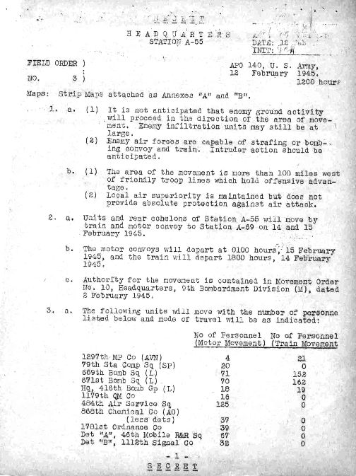 416th BG Movement from Melun/Villaroche, France (Station A-55) to Laon/Athies, France (Station A-69)