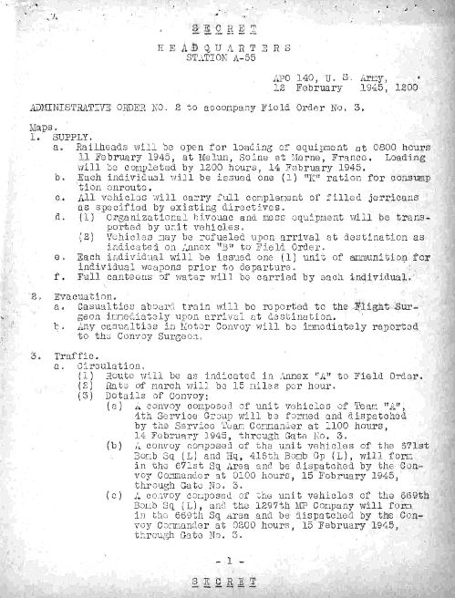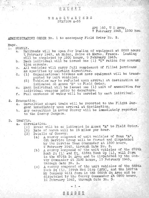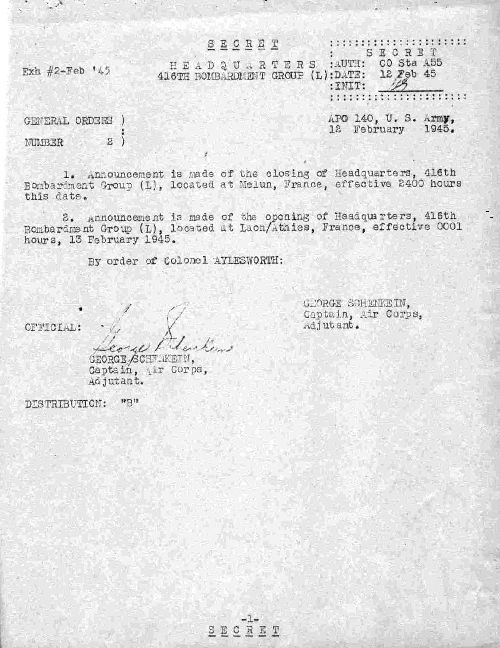 Melun HQ Closed, 2400 hours, 12 February 1945; Laon HQ Open, 0001 hours, 13 February 1945